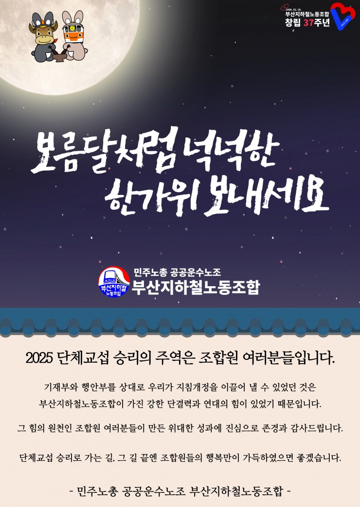 7월 3일(목), 10시 30분 부산시청 앞 광장에서 '2025년 단체교섭 승리를 위한 조합원 결의대회'를 진행하였다.폭염의 고통 속에서도 약 1000여 명의 조합원들이 모여 강인한 의지와 결의를 부산시와 사측에 보여주었다. 합의사항 이행을 …