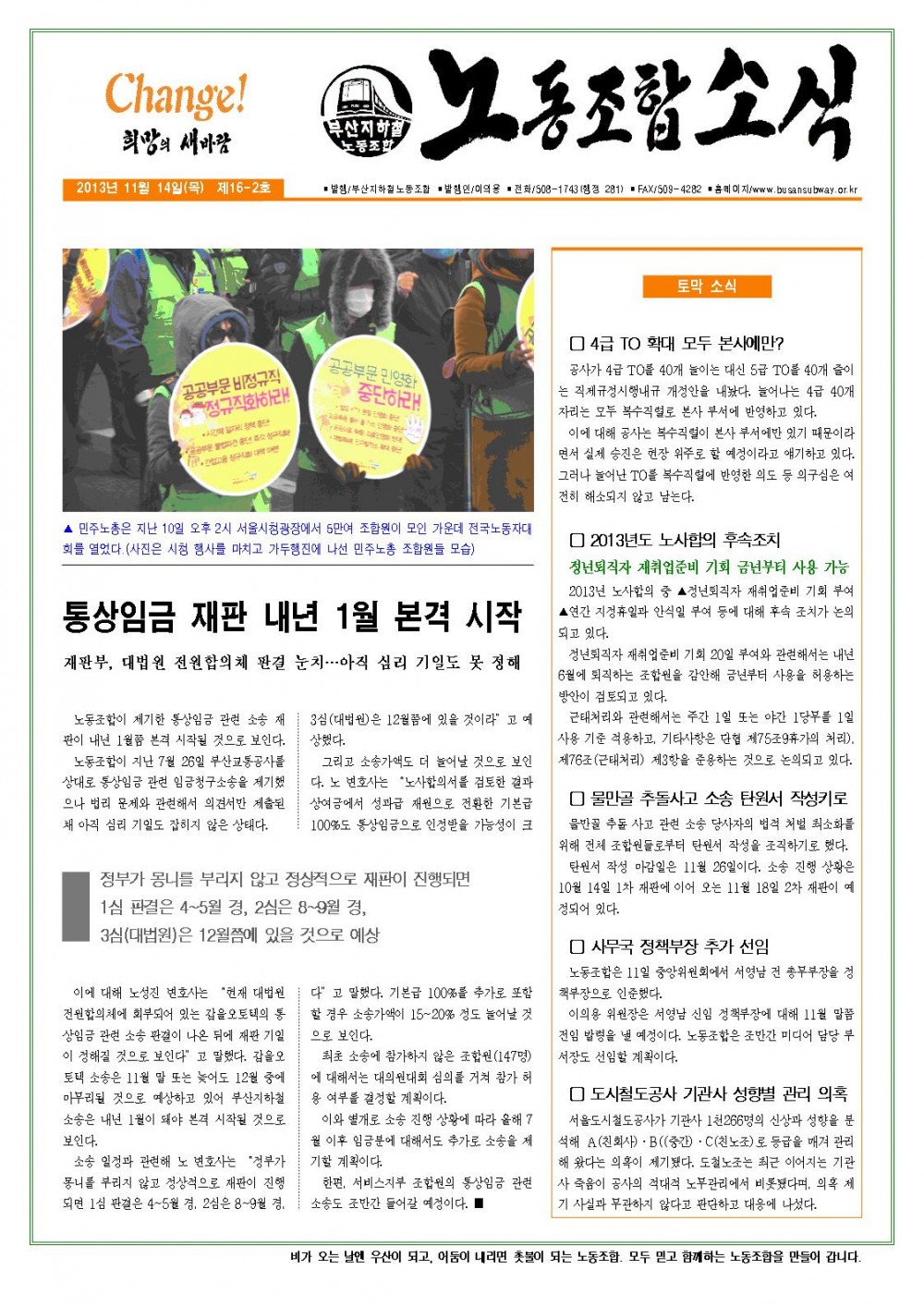노동조합소식16-2(11월14일자) 페이지 정보 작성자 부산지하철노동조합 쪽지보내기 메일보내기 자기소개 아이디로 검색 전체게시물 쪽지보내기 메일보내기 자기소개 아이디로 검색 전체게시물 댓글 0건 조회 2,164회 작성일 13-11-14 13:05 본문 목록 이전글○ × 퀴즈 13.11.15 다음글핵없는 세상을 위한 부산시민 한마당 - 고리 원전이 안전해? 응답하라 2013부산! 13.11.14 댓글목록 댓글목록 등록된 댓글이 없습니다.